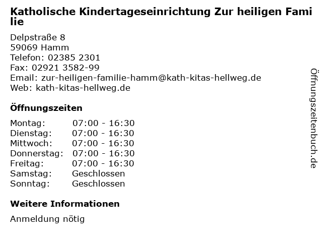 3 Katholische Kindertageseinrichtung St. Elisabeth (Entfernung: 3,01 km) Schellingstraße 11, 59069 Hamm 5 Kath. Kindertageseinrichtung St. Bonifatius Werries (Entfernung: 4,50 km) Alter Uentroper Weg 160, 59071 Hamm 6 |