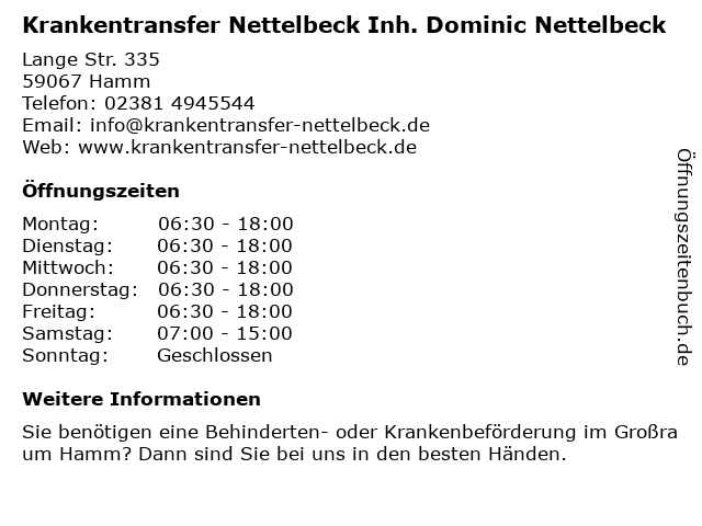 Branchen & Suchbegriffe zu Krankentransfer Nettelbeck Inh. Dominic Nettelbeck:dominic, krankentransfer, nettelbeck |