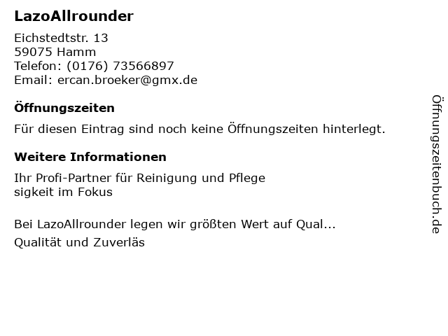 Öffnungszeiten LazoAllrounder in Hamm anzeigen | |