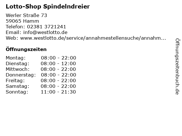 | Öffnungszeiten Lotto-Shop Spindelndreier in Hamm anzeigen | |