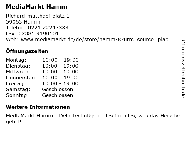 | Öffnungszeiten MediaMarkt Hamm in Hamm anzeigen | |