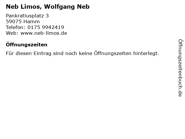 | Öffnungszeiten Neb Limos, Wolfgang Neb in Hamm anzeigen | |
