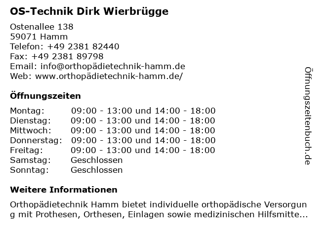 | Öffnungszeiten OS-Technik Dirk Wierbrügge in Hamm anzeigen | |