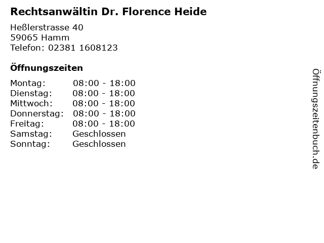 Branchen & Suchbegriffe zu Rechtsanwältin Dr. Florence Heide:dr., florence, heide, recht, rechtsanwältin, sprechzeiten |