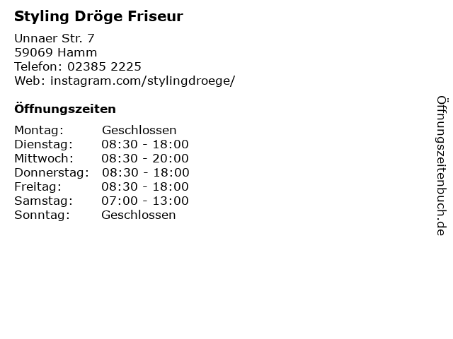 | Öffnungszeiten Styling Dröge Friseur in Hamm anzeigen | |