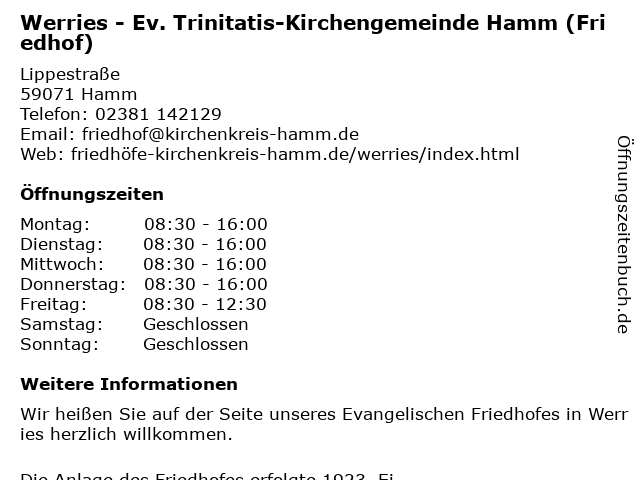 Branchen & Suchbegriffe zu Werries - Ev. Trinitatis-Kirchengemeinde Hamm (Friedhof):ev., friedhof, kirchengemeinde, trinitatis, werries |