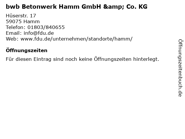 | bwb Betonwerk Hamm GmbH & Co. KG anrufen | |