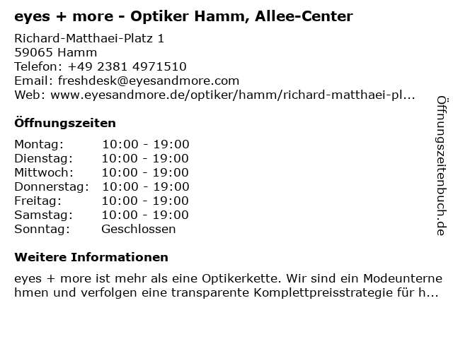 Branchen & Suchbegriffe zu eyes + more - Optiker Hamm, Allee-Center:allee, arbeitsplatzbrille, blaulichtfilter brille, brille, brille kaufen, brillen angebote, brillen beratung, center, damenbrille, einstärkenbrille, eyes, gleitsichtbrille, günstige brillen, herrenbrille, lesebrille, markenbrillen, more, optiker, sehhilfe, sehtest, sonnenbrille, sonnenbrille mit sehstärke, sportbrille, sportbrille mit sehstärke |