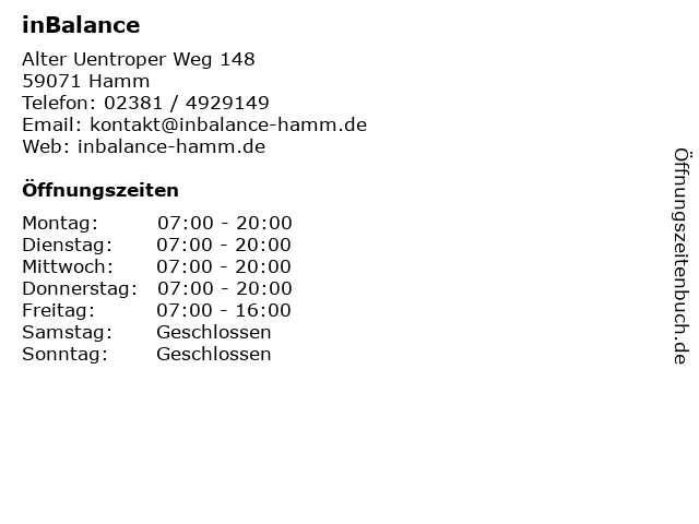 | Öffnungszeiten inBalance in Hamm anzeigen | |
