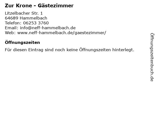 | Öffnungszeiten Zur Krone - Gästezimmer in Hammelbach anzeigen | |