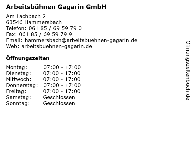 Arbeitsbühnen Gagarin GmbH in Hammersbach: Telefonnummer, Öffnungszeiten und Adresse