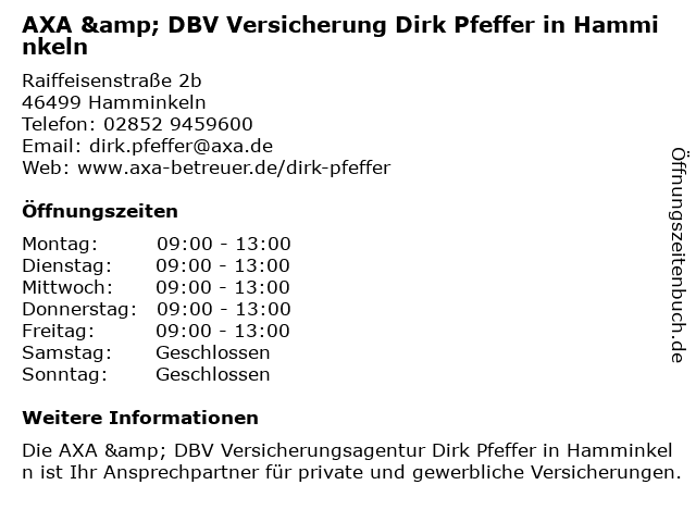 Branchen & Suchbegriffe zu AXA & DBV Versicherung Dirk Pfeffer in Hamminkeln:altersvorsorge, autoversicherung, axa, berufshaftpflichtversicherung, dbv, dirk, gebäude- und hausratsversicherung, kfz-versicherung (motorrad), lebensversicherung, pfeffer, unternehmen für versicherungsfachfragen, versicherung, zahnmedizinische versicherung |