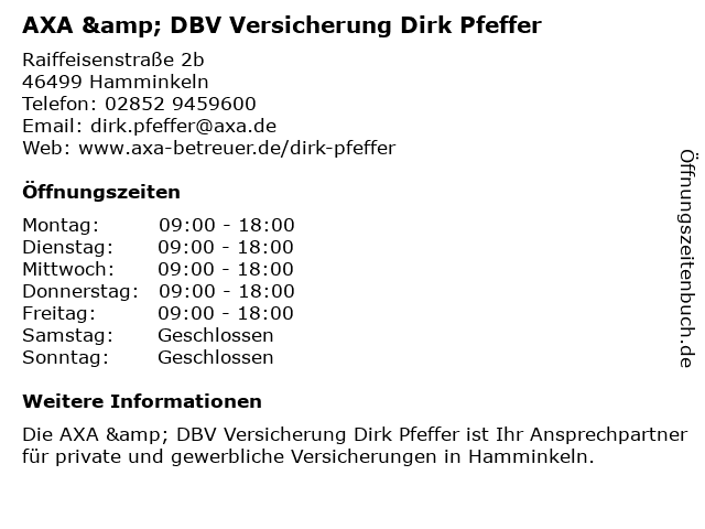 1 LVM Versicherung Dirk Mümken - Versicherungsagentur (Entfernung: 3,15 km) Hamminkelner Straße 2, 46499 Hamminkeln 2 AXA Versicherung - Generalvertretung Torsten Freigang (Entfernung: 4,38 km) Hamminkelner Landstr. 122 B, 46487 Wesel 6 |
