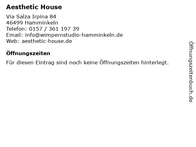 | Öffnungszeiten Aesthetic House in Hamminkeln anzeigen | |
