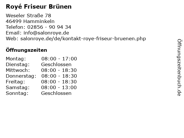 | Öffnungszeiten Royé Friseur Brünen in Hamminkeln anzeigen | |