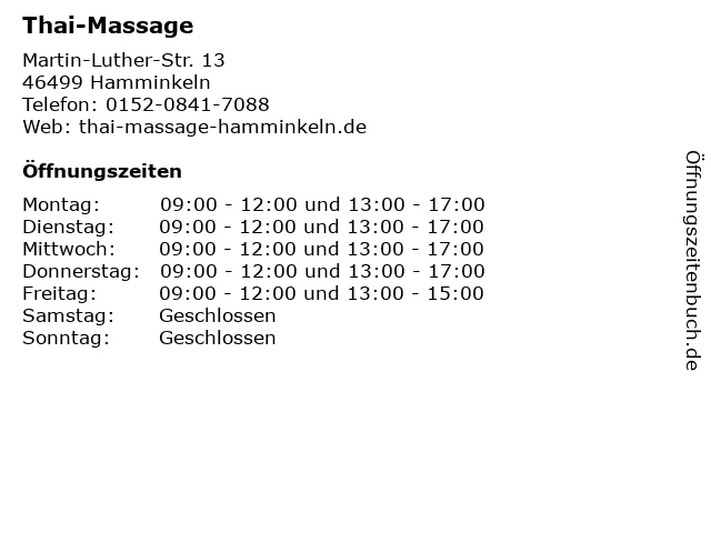 | Öffnungszeiten Thai-Massage in Hamminkeln anzeigen | |