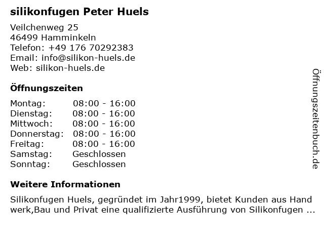 Öffnungszeiten silikonfugen Peter Huels in Hamminkeln anzeigen | |