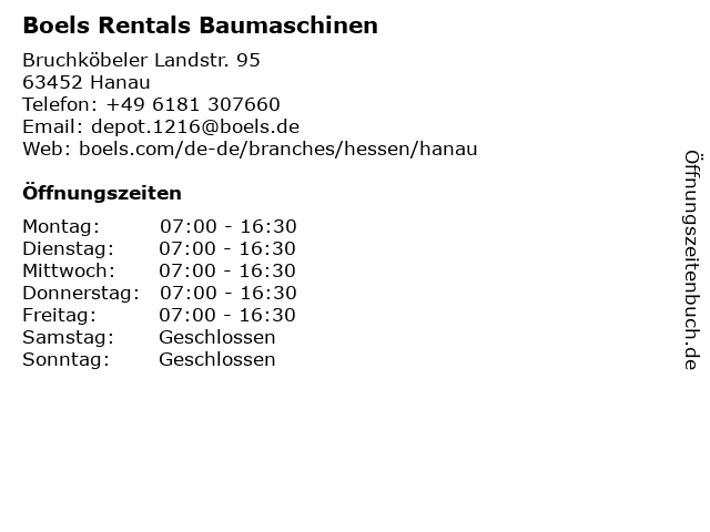 | Öffnungszeiten Boels Rentals Baumaschinen in Hanau anzeigen | |