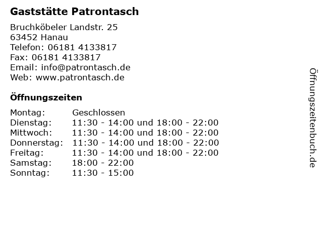 | Öffnungszeiten Gaststätte Patrontasch in Hanau anzeigen | |