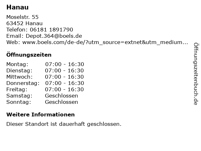 | Öffnungszeiten Hanau in Hanau anzeigen | |