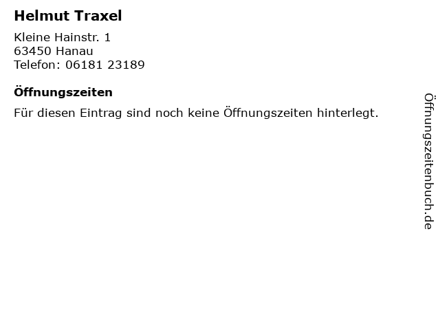 | Öffnungszeiten Helmut Traxel in Hanau anzeigen | |