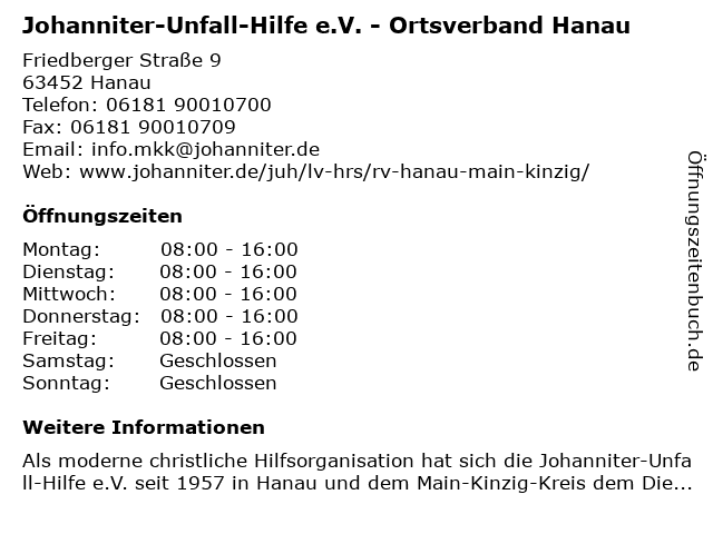 Branchen & Suchbegriffe zu Johanniter-Unfall-Hilfe e.V. - Ortsverband Hanau:e.v., gemeinnützige organisation, hilfe, hilfsorganisation, johanniter, ortsverband, sozialarbeit, unfall, verband, wohlfahrtseinrichtung |