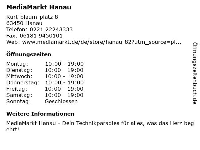 Öffnungszeiten MediaMarkt Hanau in Hanau anzeigen | |