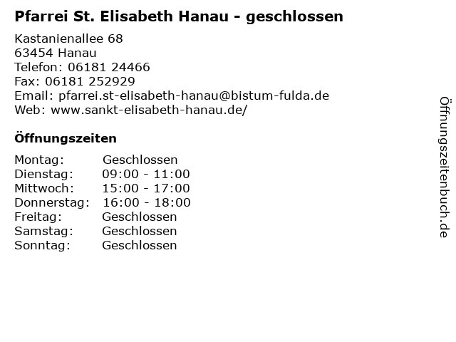 Branchen & Suchbegriffe zu Pfarrei St. Elisabeth Hanau - geschlossen:elisabeth, geschlossen, pfarrei |