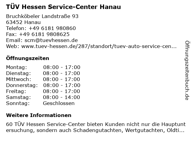 4 TÜV-Servicecenter Frankfurt-Fechenheim (Winter) (Entfernung: 11,14 km) Ernst-Heinkel-Str. 5, 60386 Frankfurt 6 |
