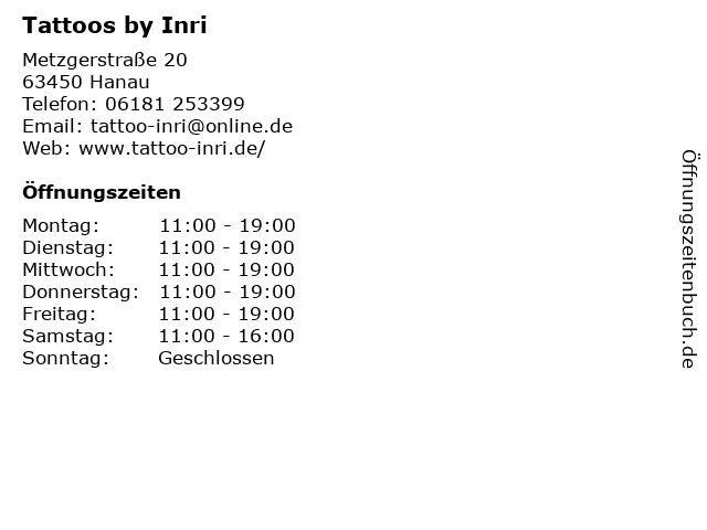 | Öffnungszeiten Tattoos by Inri in Hanau anzeigen | |
