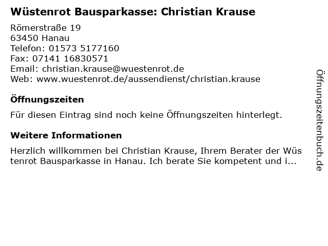 | Wüstenrot Bausparkasse: Christian Krause anrufen | |