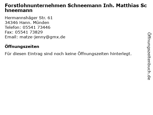 | Forstlohnunternehmen Schneemann Inh. Matthias Schneemann anrufen | |
