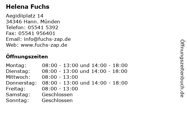 | Öffnungszeiten Helena Fuchs in Hann. Münden anzeigen | |