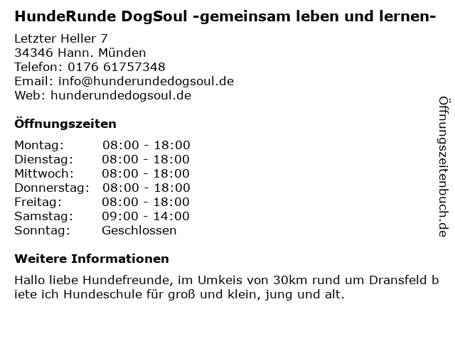 Branchen & Suchbegriffe zu HundeRunde DogSoul -gemeinsam leben und lernen-:dogsoul, gemeinsam, hundeausführer, hunderunde, leben, lernen, tierbetreuung |