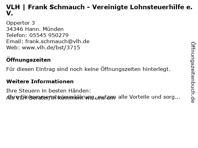 | VLH | Frank Schmauch - Vereinigte Lohnsteuerhilfe e.V. anrufen | |