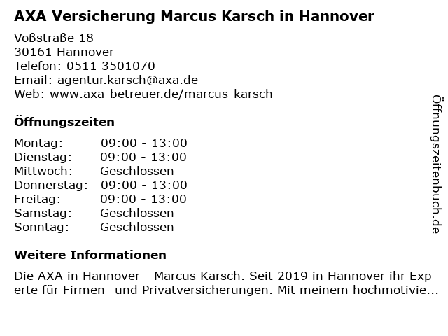 4 Allianz Versicherung Marcus Karsch Generalvertretung (Entfernung: 2,24 km) Günther-wagner-allee 17, 30177 Hannover 6 |