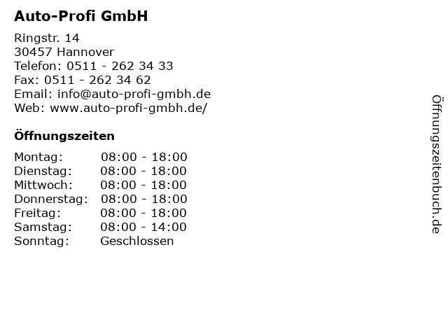 | Öffnungszeiten Auto-Profi GmbH in Hannover anzeigen | |