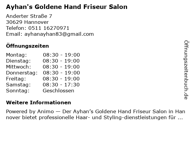 Branchen & Suchbegriffe zu Ayhan's Goldene Hand Friseur Salon:ayhan's, friseur, goldene, hand, salon |