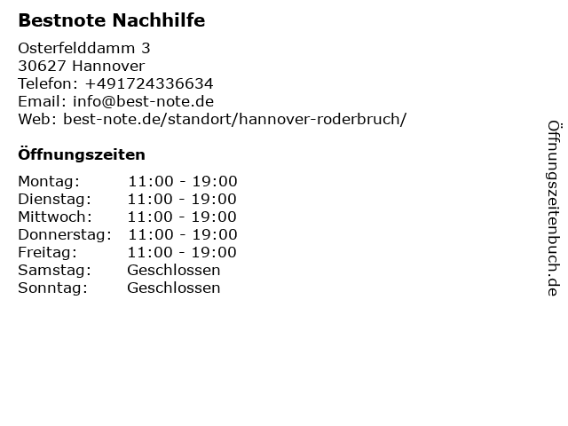 | Öffnungszeiten Bestnote Nachhilfe in Hannover anzeigen | |