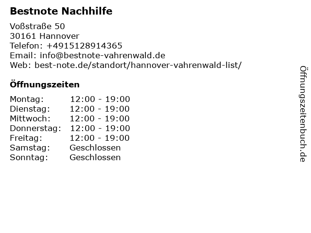 | Öffnungszeiten Bestnote Nachhilfe in Hannover anzeigen | |