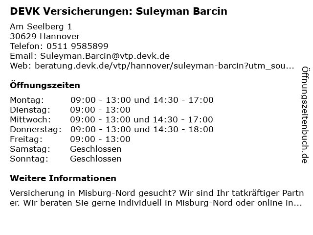 1 DEVK Versicherungen: Stephan von Kamp (Berater*in ausgeschieden) (Entfernung: 0,01 km) Am Seelberg 1, 30629 Hannover 2 DEVK Versicherungen: Rüdiger Ilse & TEAM e.K. (Entfernung: 3,46 km) Karl-wiechert-allee 23, 30625 Hannover 5 DEVK Versicherungen Regionaldirektion Hannover (Entfernung: 7,88 km) Hamburger Allee 22, 30161 Hannover 6 |