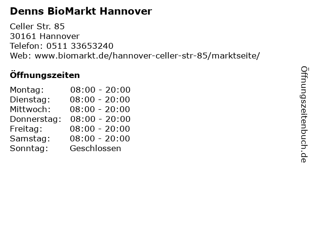 | Telefonnummer Denns BioMarkt Hannover in Hannover (0511 33653240) anrufen | |