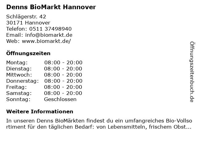 Öffnungszeiten Denns BioMarkt Hannover