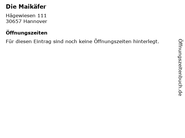 | Öffnungszeiten Die Maikäfer in Hannover anzeigen | |