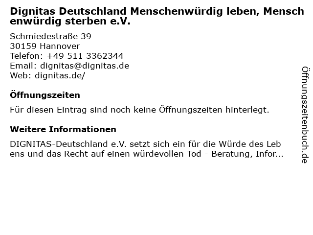 | Dignitas Deutschland Menschenwürdig leben, Menschenwürdig sterben e.V. anrufen | |