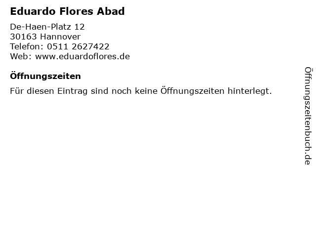 | Öffnungszeiten Eduardo Flores Abad in Hannover anzeigen | |