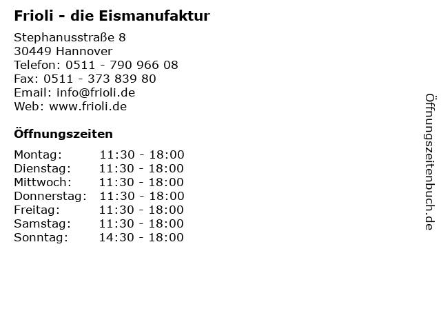 | Öffnungszeiten Frioli - die Eismanufaktur in Hannover anzeigen | |