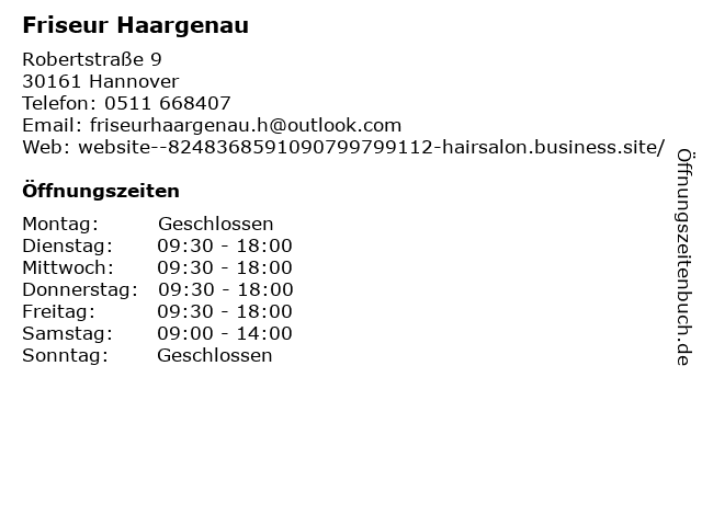| Öffnungszeiten Friseur Haargenau in Hannover anzeigen | |