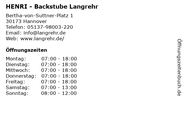 | Öffnungszeiten HENRI - Backstube Langrehr in Hannover anzeigen | |