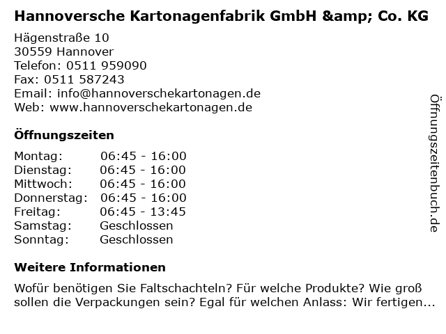 Branchen & Suchbegriffe zu Hannoversche Kartonagenfabrik GmbH & Co. KG:hannoversche, kartonagenfabrik |